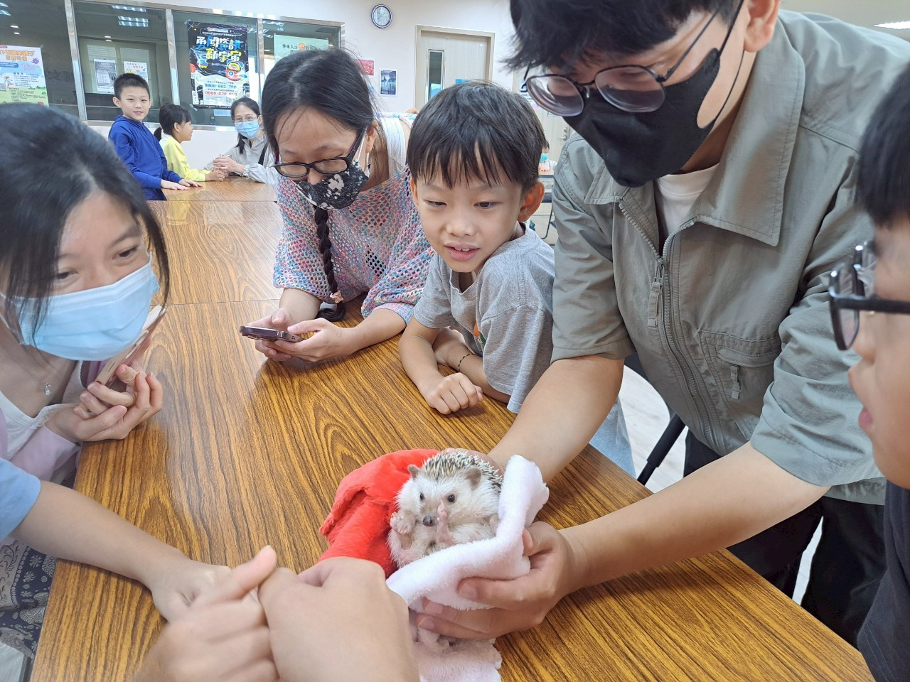 圖一 : 來自雨林蟲現生態工作室的 蒲啊老師,正在教學如何正確、安全的與刺蝟互動。